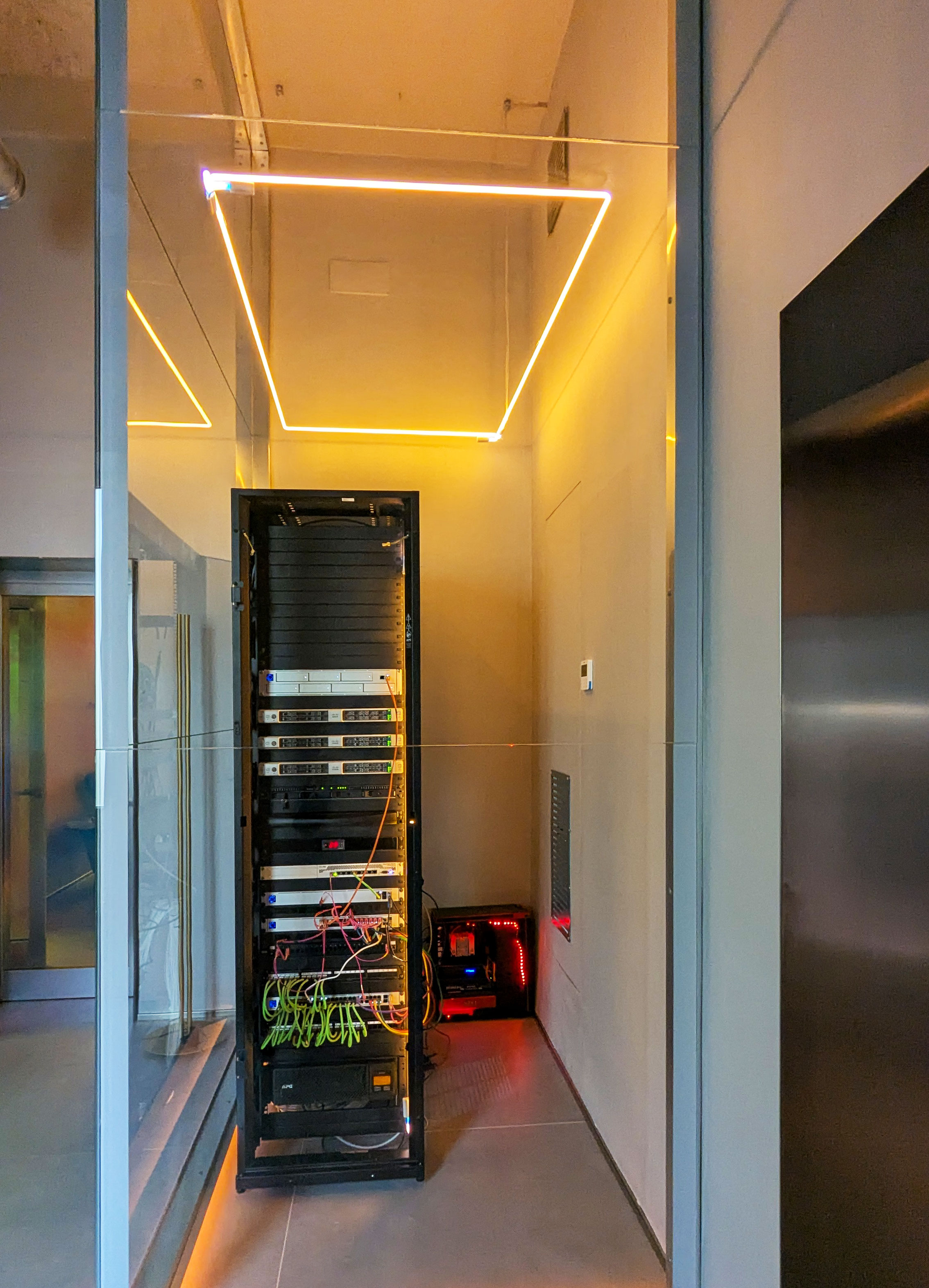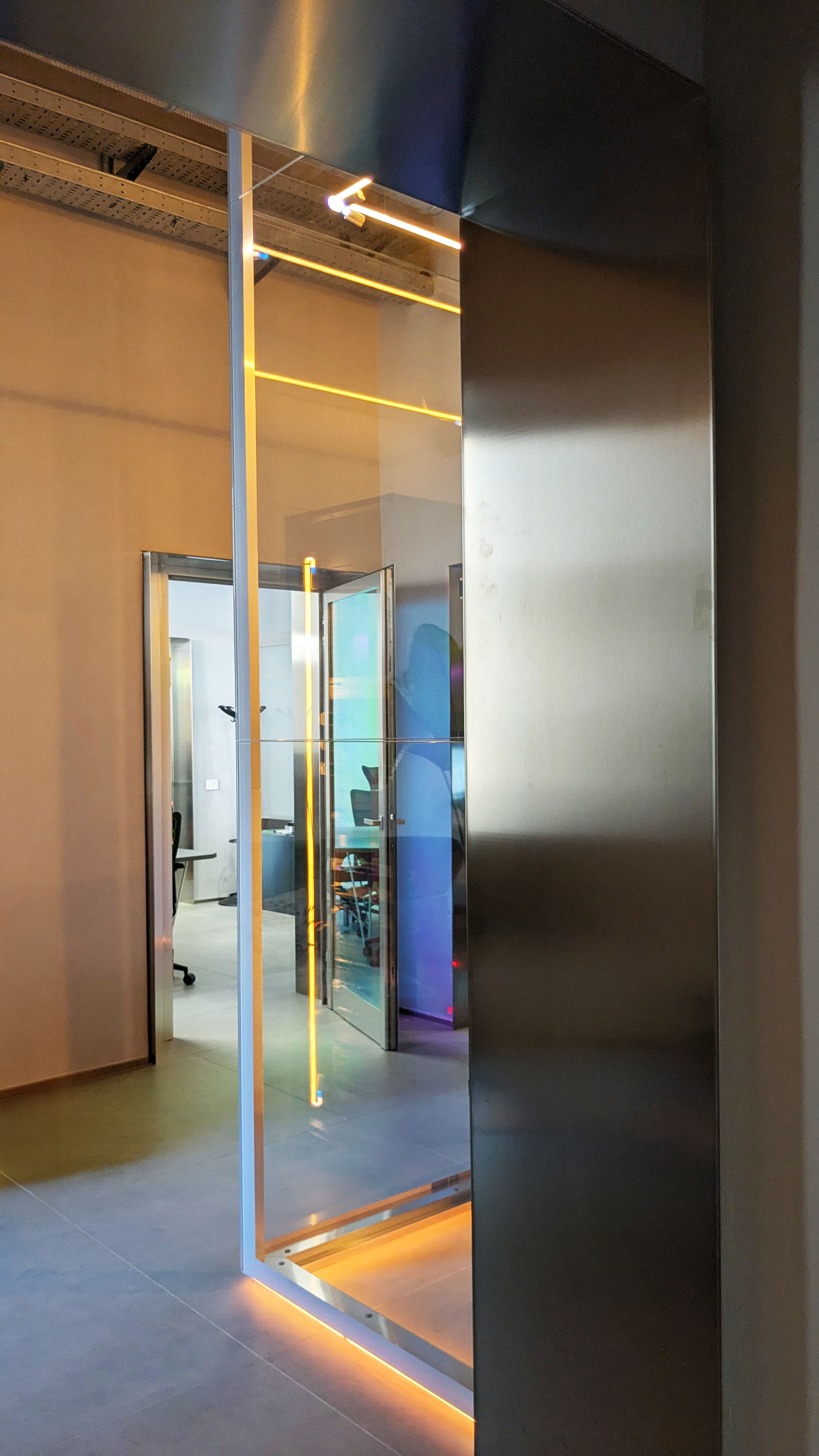From stainless steel door frames that act as portals into a virtual workspace, to bespoke lighting and furniture designed and fabricated in our own workshops, nearly every element of the project was tailored specifically for this space. These components were then shipped via both sea freight and express delivery, allowing us to achieve a seamless architectural and interior identity—from macro to micro scale.