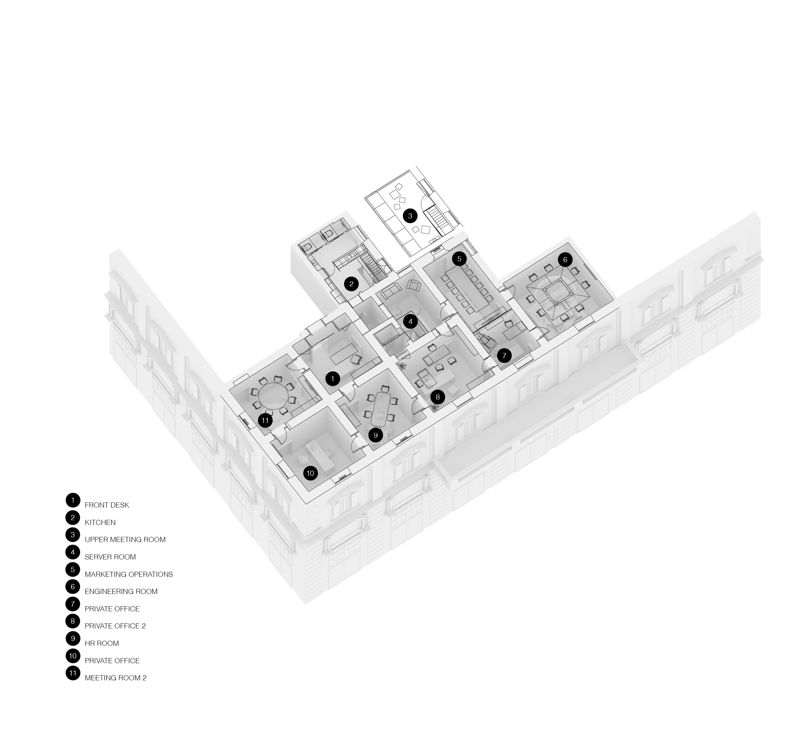 O3 is the new headquarters of an Italian cybersecurity startup located in the historic heart of Rome. Specializing in IoT-related cyber protection, the company approached us with a clear vision: to create a radically different workspace an "extra-territorial" environment that contrasts sharply with the layered, historic context of central Rome.