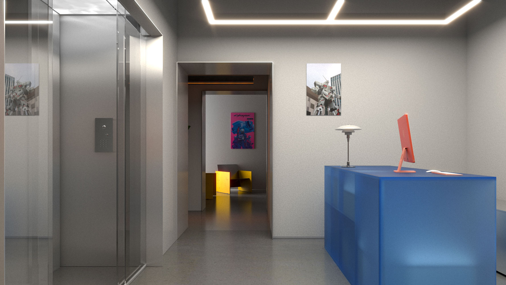 Their product anticipates a future dominated by smart, network-connected electronic devices woven into every aspect of daily life. In response, we envisioned a workspace that would feel like a form of teleportation, an immersive, other-dimensional environment designed to spark innovation and inspire the development of future-facing technologies.